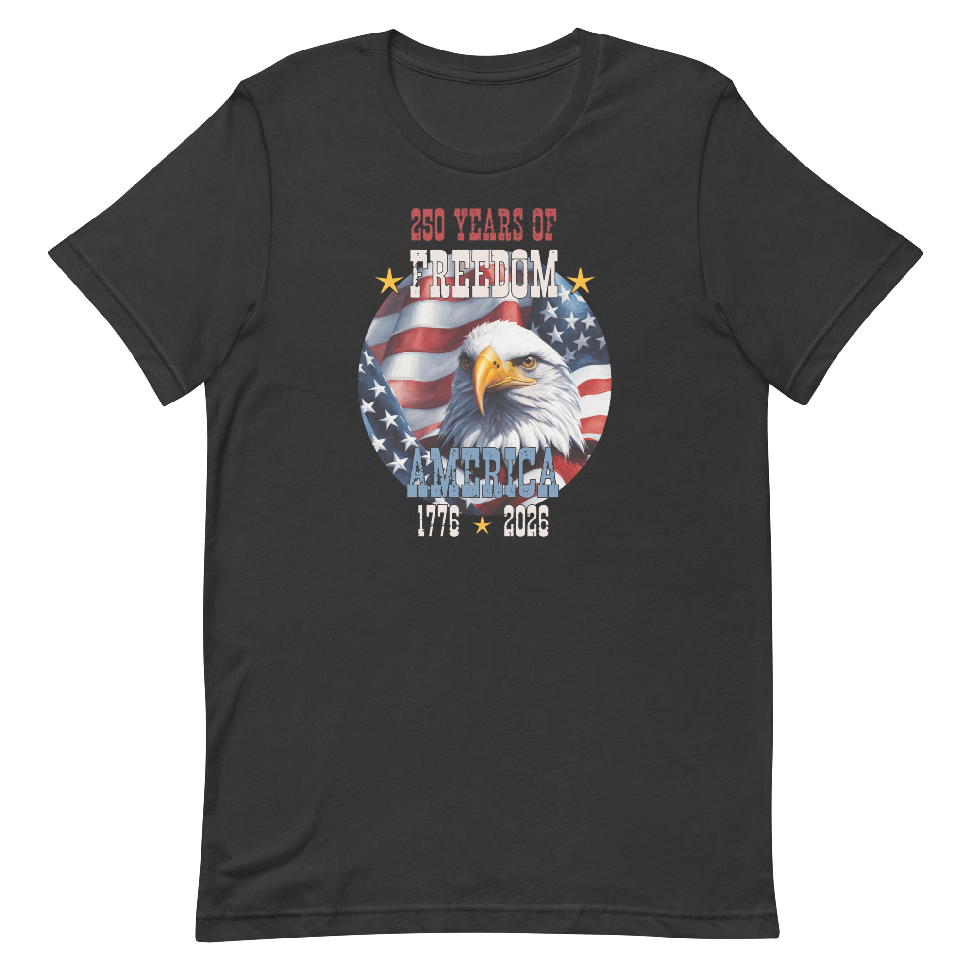 For 250 years, the spirit of freedom has defined America. This patriotic design featuring a waving flag and powerful bald eagle celebrates the enduring legacy of liberty from 1776 to 2026.