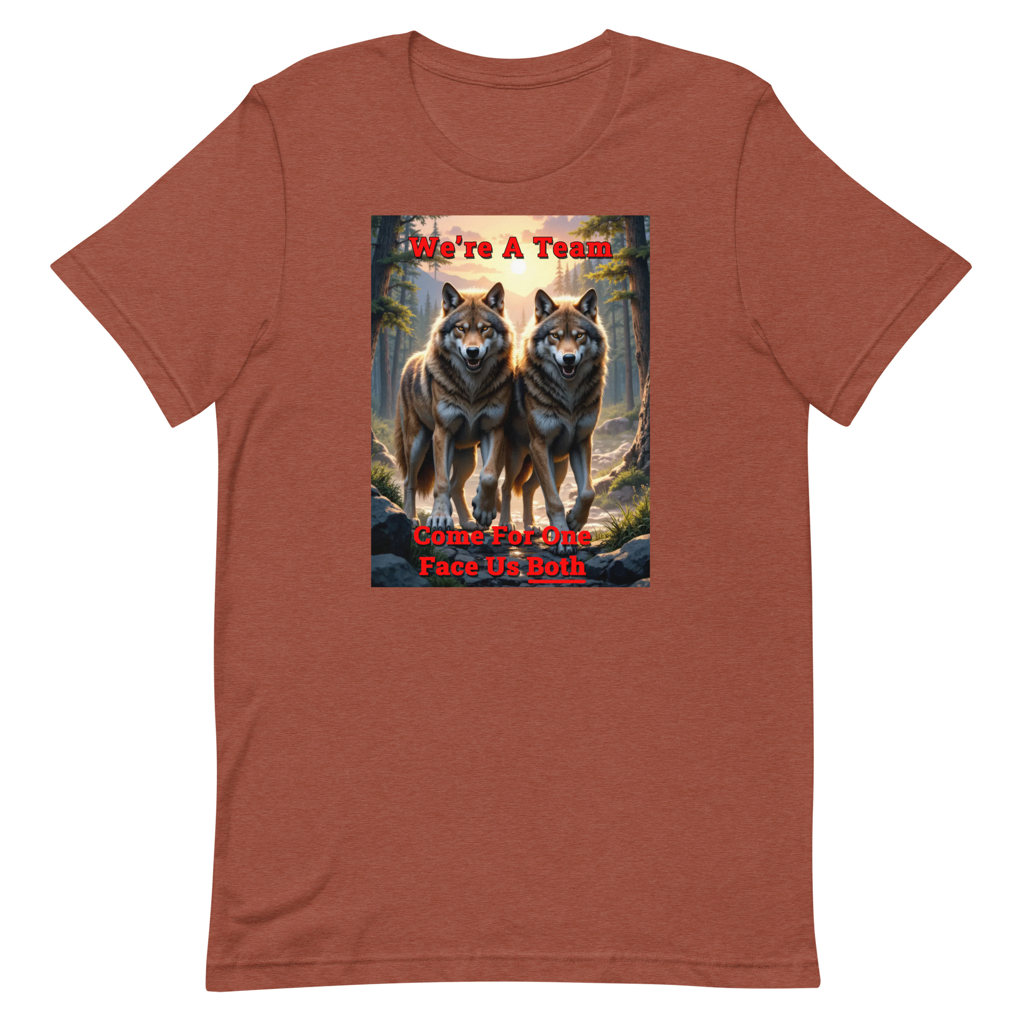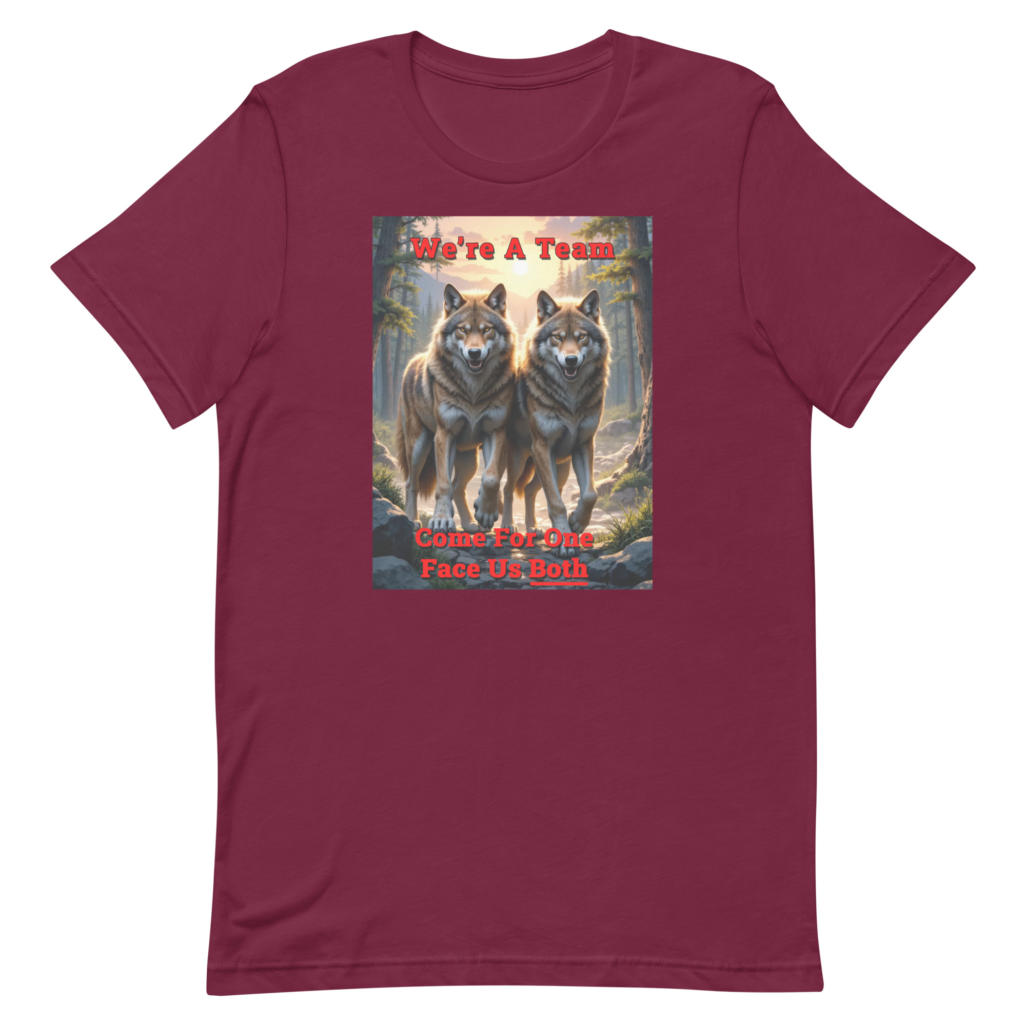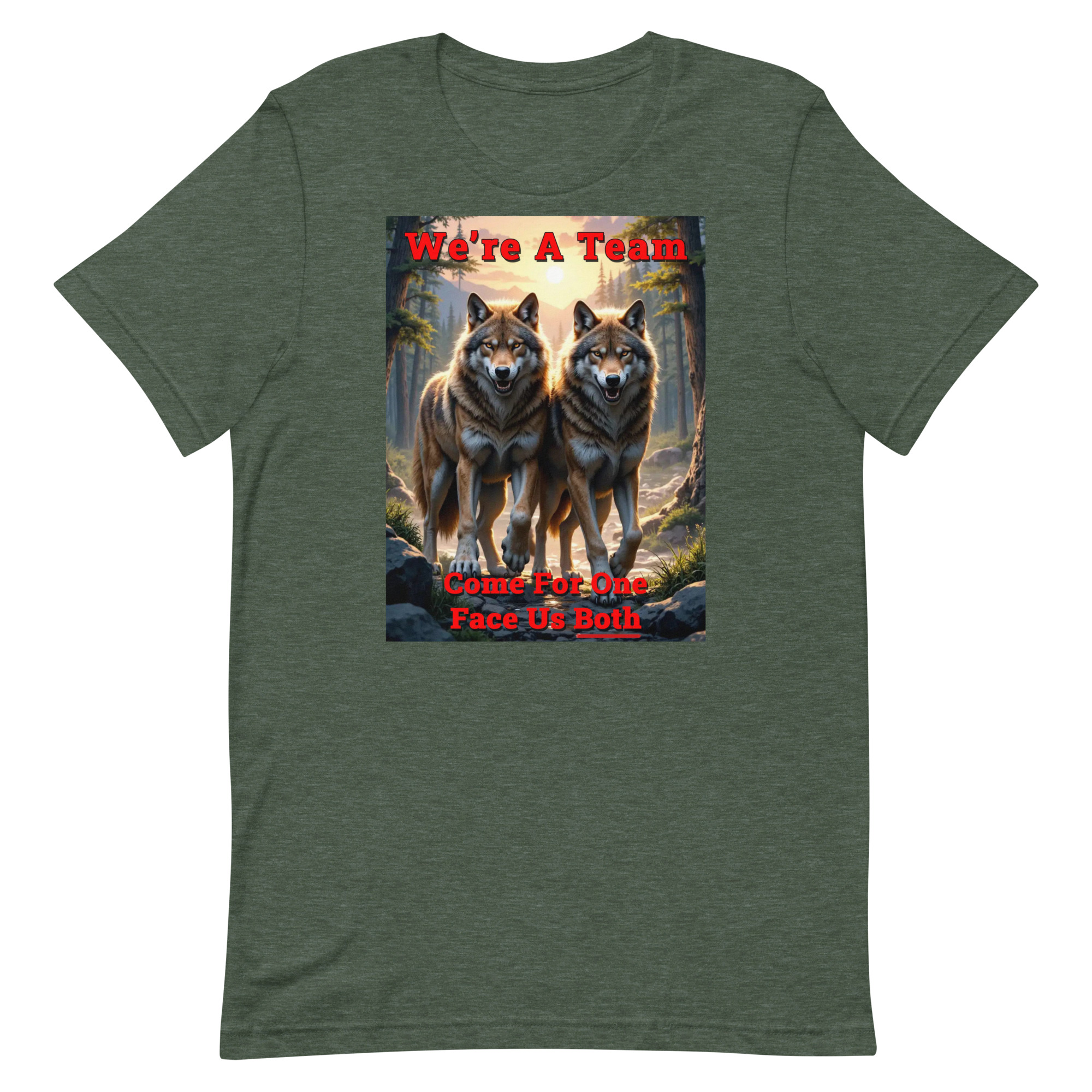 We’re a Team – Come for One Face Us Both Wolf Shirt