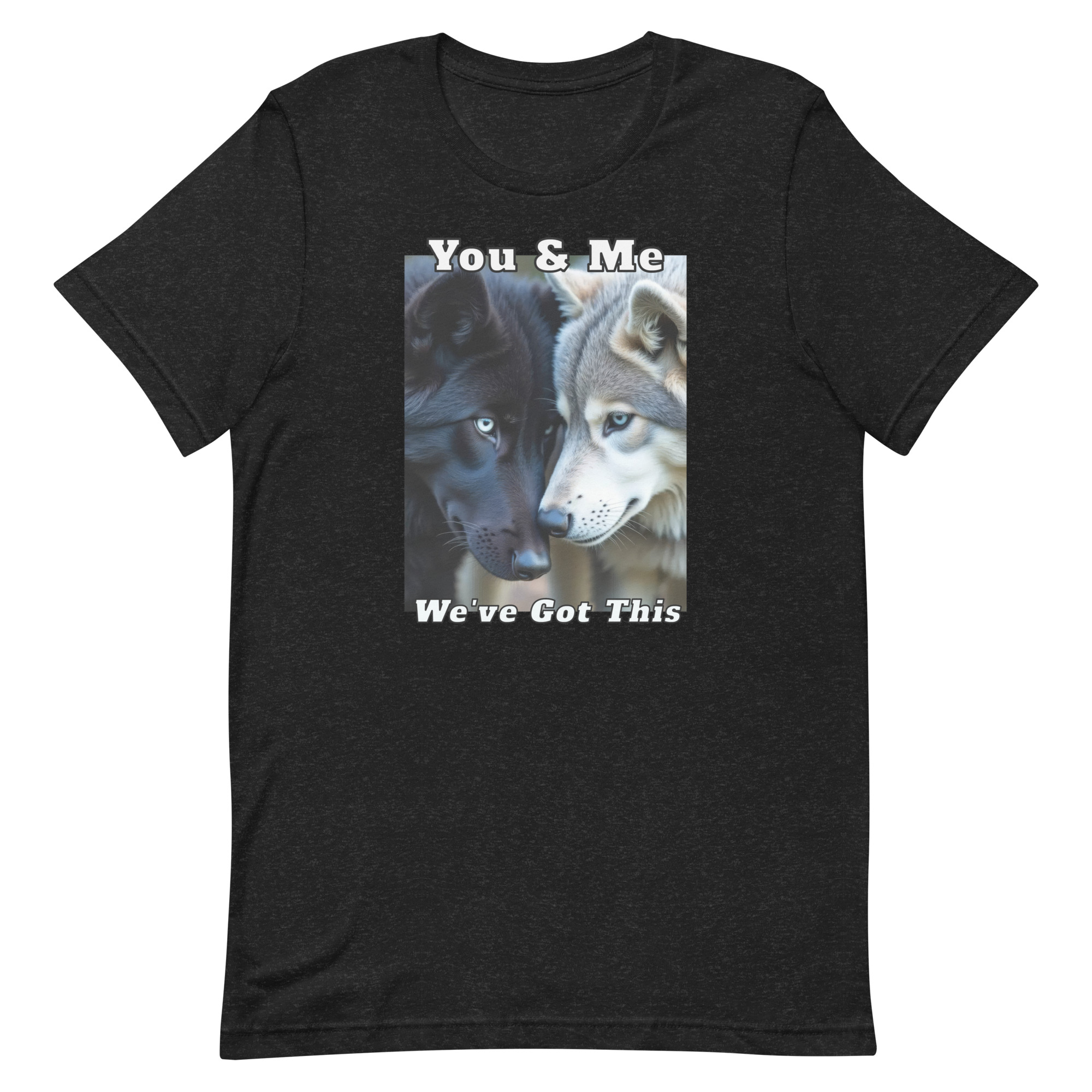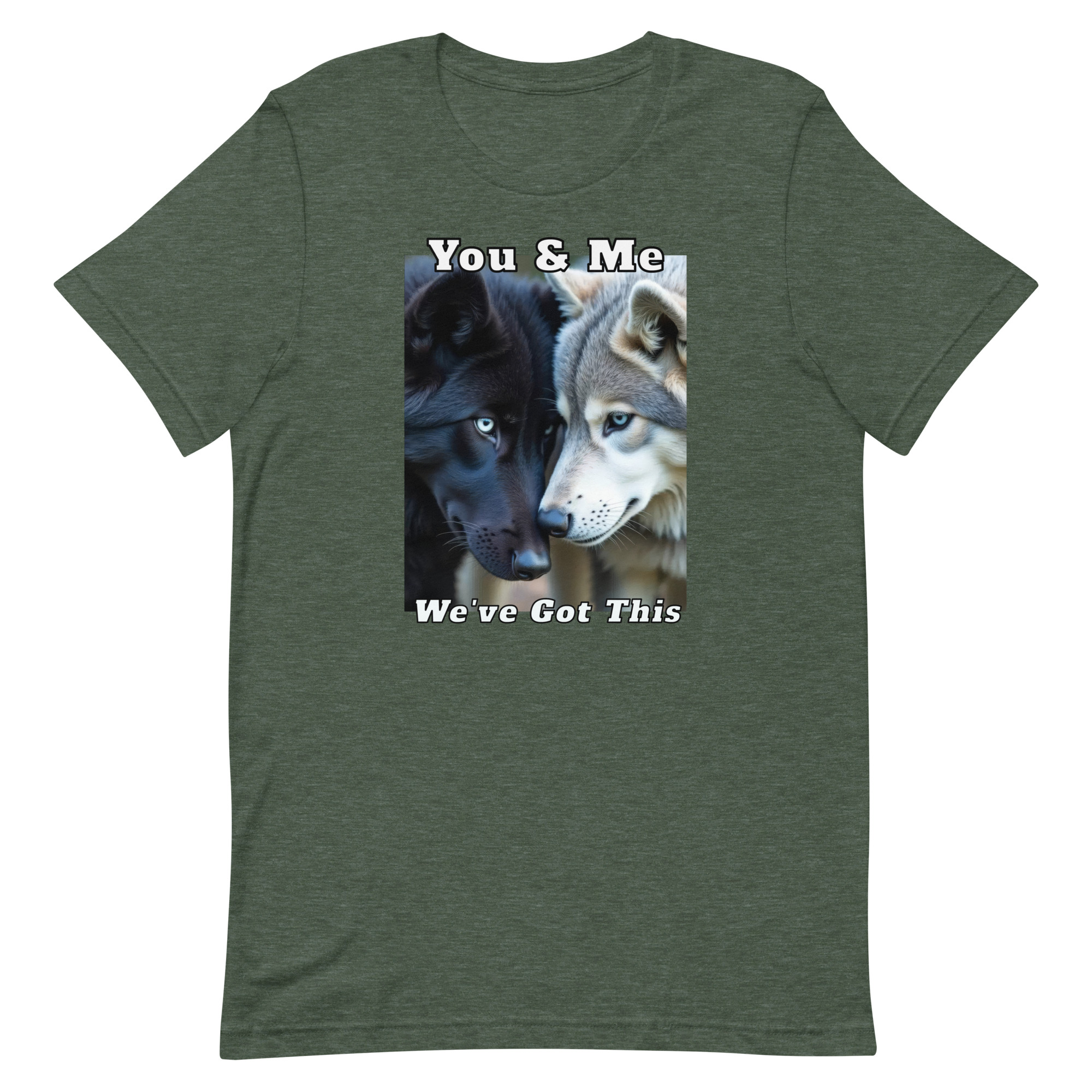 This beautiful design captures that idea with two wolves standing nose to nose — calm, connected, and completely in sync.